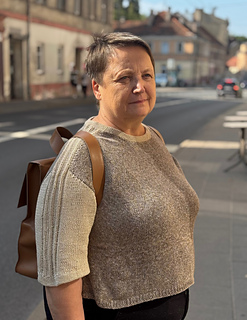 Materials: recommended 150 (200, 200, 200) (250, 250, 250, 300) 300 g of Tynn Line by Sandnes Garn (50 g = 220 m (241 yds)) in main color and 100 (100, 150, 150) (150, 150, 200, 200) 200 g in contrasting color.