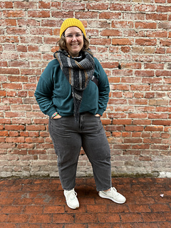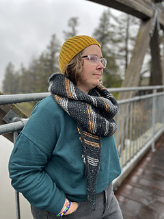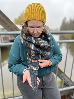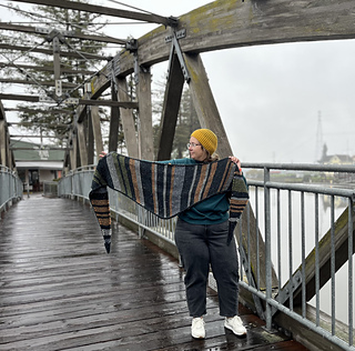 The Petaluma River bends through the center of my hometown and one of my favorite things growing up was standing on the docks or the old railroad watching the light dancing on the river. I hope this shawl transports you to your own hometown nostalgia.