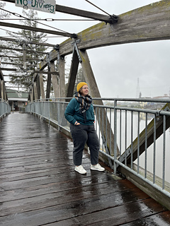 Picture a rainy evening out in a quiet town lined with coffee shops and restaurants. Lights reflecting off the wet streets and, in the distance, those same lights streak across a winding river.