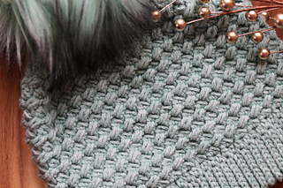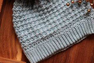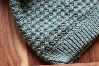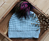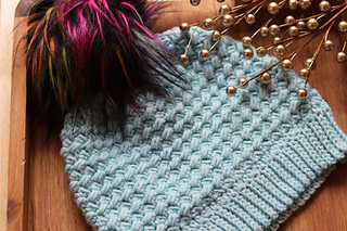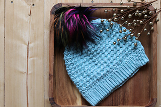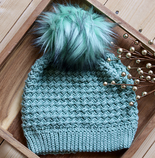 The texture will be worked throughout the hat to the top where you may add an optional pompom.