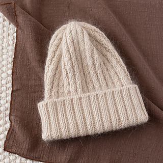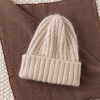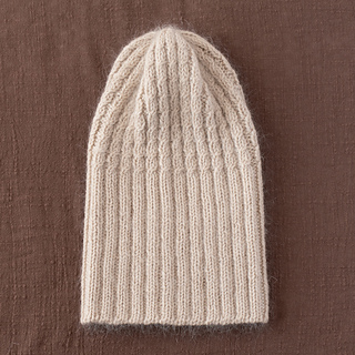 The Riverbed Hat is knit in the round from the bottom up with two strands of yarn held together – DK-weight merino wool and mohair.
