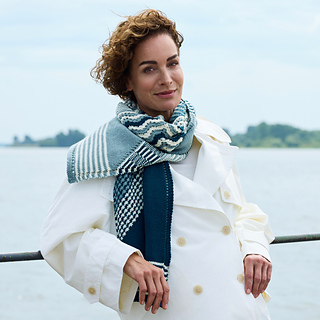 Let Riverlines take you on a journey along the stream, and experience how the lively current is reflected in this exciting scarf by Emma Ducher. Discover the ripples of the water in the various patterns with lace elements, slipped stitches and texture variations that turn knitting into a thrilling journey of discovery. You’ll find the varied tones of glittering waves, playful spray and mysterious depths in the colours Edelweiss, Dragonfly and Gardenpond of our Lovely Merino Treat. Let them gently carry you and become one with the flow of the river.