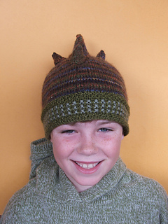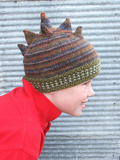 This is a simple dinosaur themed beanie for kids. It is knitted-in-the-round and so requires a 3.75mm/US size 5, 16 inch/40cm circular needle and a set of 4 dpns to match.