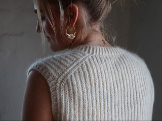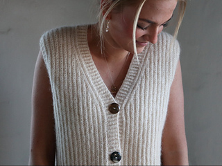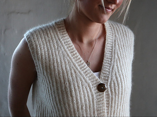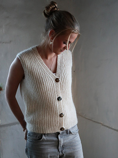 Size guide: The Robin Vest is worked with fisherman’s rib, which by nature gives way and pulls up a little. The vest is designed to have a tight fit and should therefore only have a positive ease of approx. 3-6 cm. Size XS (S) M (L) XL equals a chest measurement of about 85 (90) 95 (102) 112 cm. Measure yourself and consider the size before starting to knit the vest. The vest can be made longer but be aware that your yarn spending will increase.