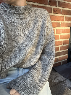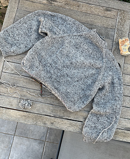 Yarn: 350 (400) 400-450 (450) g Lima by Hjertegarn in color 434 Light Grey (50 g = 100 m (109 yds)) held together with 100 (100) 100 (125) g Soft Silk Mohair by Knitting for Olive in color Dark Moose (25 g = 225 m (246 yds)).