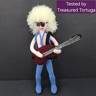 The finished Rockstar is 14” tall (36cm) using 100% Acrylic Loops & Threads Impeccable Yarn.