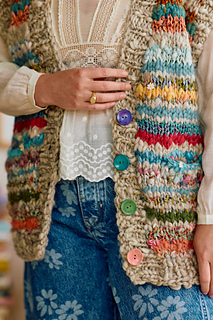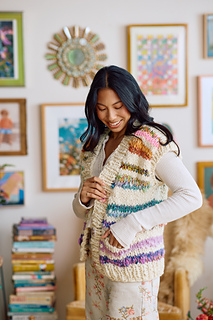 Contrast Colors (CC): 2 (2, 2, 3, 3) 3, 4, 4, 4 Sampler Kits(used throughout the body of the vest only) in any combination of: Mini Skein Sampler Kit (approx. 85 yds (78 m) / 164-170 g – 5 mini skeins of yarn included per kit, 17 yds(16 m) / skein). Includes Spun Cloud, Wildflower, Cast Away, Dreamland, and Daisy Chain yarns. Wildflower Mini Skein Kit (100% cotton; approx. 85yds (78 m) / 100 g) – 5 mini skeins of yarn included per kit, 17 yds (16 m) / skein