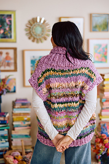 The Rodeo Vest is a simple top-down sweater vest with an oversized Shawl Collar. It’s perfect for layering over your favorite dress or jeans! Go for the mixed yarn option if your creativity is calling you to play with yarns and colors. Go for the solid version if you just know the solid option will get more use in your closet.