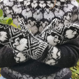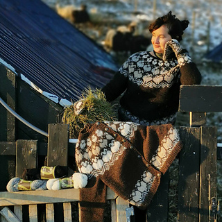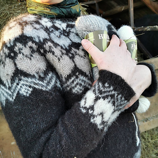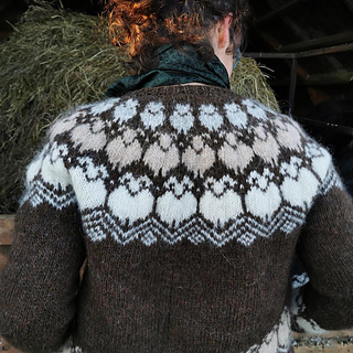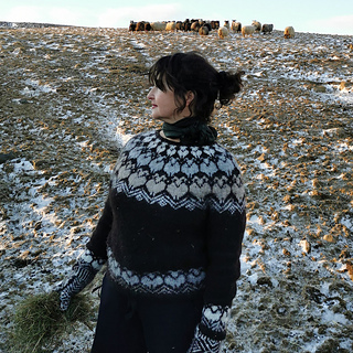 Just like the mittens of the same name, the Rollur lopapeysa is an ode to the Icelandic sheep. One of the assignments I set myself when working the charts was to draw a sheep that was immediately recognizable as an Icelandic sheep and could not be confused with a goat or any other horned animal.
