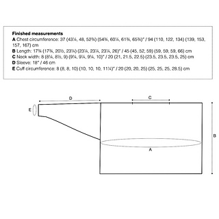 11.5 stitches x 17 rows to 4″ / 10 cm in stockinette stitch for the body, 12 stitches x 17 rows to 4″ / 10 cm in stockinette stitch for the sleeve.