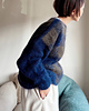 裾から輪で編み始めて脇下まで進み, 前後身頃を分けてそれぞれ肩まで往復編み, 両肩は表を見ながらThree-Needle-Bind-Offの方法で綴じるので, 肩のシームもデザインポイントになります. 袖はアームホールから目を拾い, 袖口に向かって減らしながら編みます. クロップド丈の身頃のたっぷりあるゆとりと, しっかりと長さのある袖丈がボトムスとバランス良くコーディネートできます. また, シンプルな構造なので, お好みで着丈・袖丈を伸ばすことも可能です.