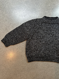 The Roomy Raglan Junior is a top-down raglan sweater. The collar is knit first, followed by German short rows to shape the neckline. Raglan increases are then worked through the yoke. After the sleeves are separated, the body is knit in the round. Live sleeve stitches are picked up and worked down to a ribbed cuff.