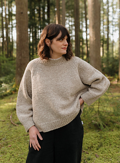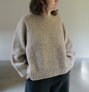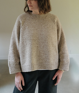 The Roomy Raglan Light is designed to be worn with a lot of positive ease. Choose a size based on how oversized you’d prefer, ideally 12”-18”/ 30 - 45 cm of ease. There are two sleeve length options to choose from, a wider bracelet length sleeve or a tapered full-length sleeve.