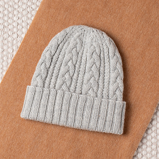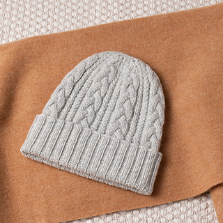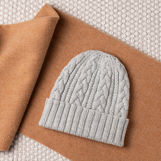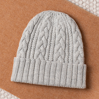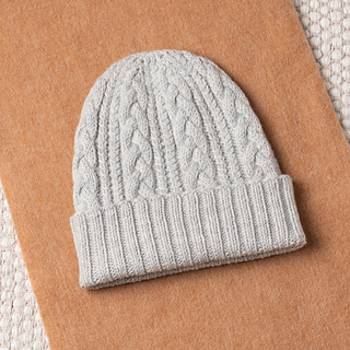 The Rope Bridges Hat is knit in the round from the bottom up with DK-weight merino wool. The design features a combination of different cables.