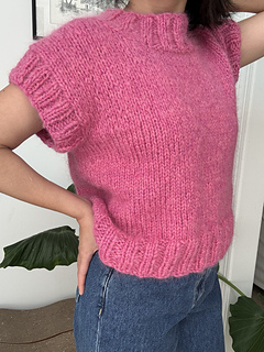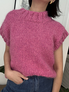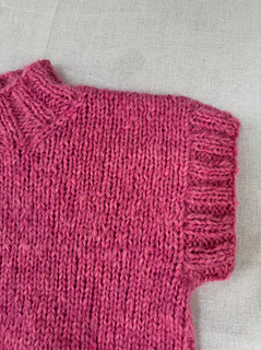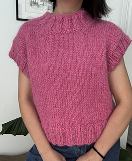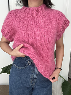 Worked from the bottom up, the body is knit in the round until the armholes, then divided into front and back panels. Stitches are picked up along the armholes and neckline and finished with a 2x2 ribbing, giving the vest a clean, polished look. This pattern is beginner-friendly, easy to follow, and quick to knit on large needles – perfect as your first garment project or a satisfying weekend make.