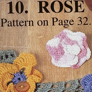 Pattern can be made with 1 main colour (green for the ‘trellis’) and oddments of yarn (solid or variegated) for the roses.
