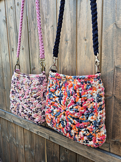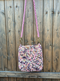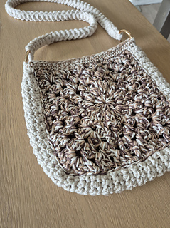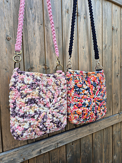 Rose Bay Bag består av to heklede bestemorsruter som hekles i stavmasker. Det hekles en lang remse i fastmarker som blir sidepaneler og bunn. Bestemorsrutene og remsen sys sammen og videre hekles det to runder med fastmasker øverst på vesken. Til slutt hekles det en rumensk snor til skulderreim.