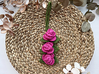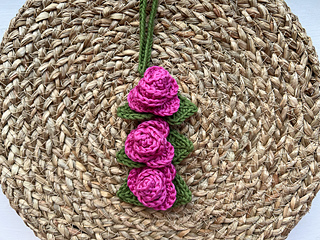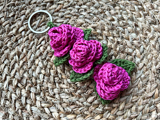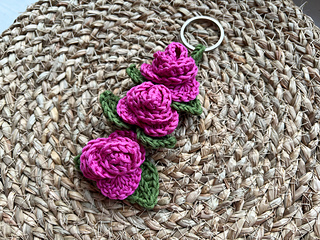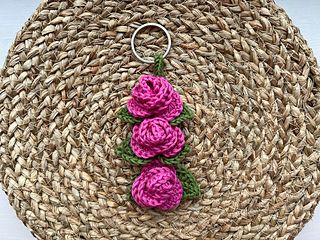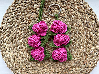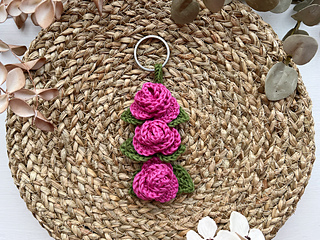 The pattern will teach you how to crochet this floral charm in two different ways - with a crocheted loop and with a keyring. The charm is written for the length of 3 roses, but can be easily made shorter or longer.