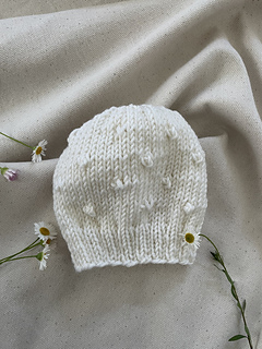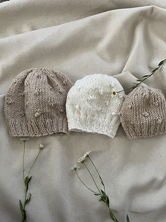 This beautiful baby hat is perfect for your full-term or premature newborn. The hat features delicate rosebuds that appear to be embroidered but are actually knitted into the hat as you go. It is generously shaped and features a firm yet stretchy band to keep it in place on your little one’s head.