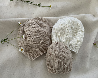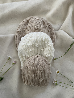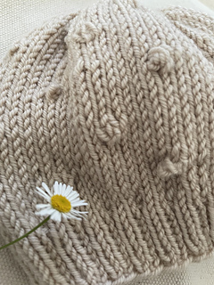 The knitting pattern instructions include two different construction methods: knit flat and seamed; and knit seamlessly in-the-round. The rosebud pattern is fully explained and easy to knit, but a plain version of the hat is also included for absolute beginner knitters (also knitted flat or in the round).