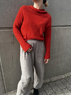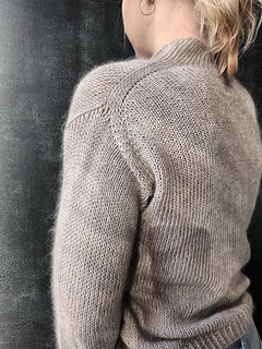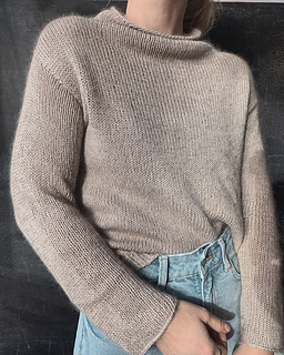 An elegant and lightweight sweater, worked from the top down in a simple construction. The neckline is worked first, followed by increases over the shoulders. The front and back pieces are worked separately back and forth in stockinette stitch. At the underarm, the work is joined, and the body is worked in the round on a circular needle in stockinette stitch. The lower edge of the body is finished with twisted rib, creating a very crisp and well-defined rib hem. Stitches are picked up for the sleeves, which are worked in the round using a circular needle and doublepointed needles or using the magic loop technique, with decreases worked along the way. The sweater has a regular fit with a positive ease of approximately 5–15 cm 2–6 inches.