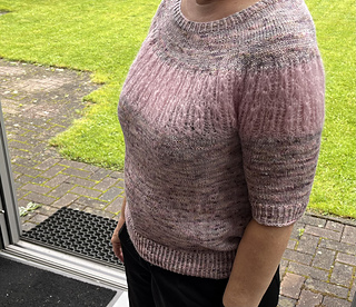 Der Roselin Pulli wird in Runden nahtlos von oben gestrickt, den etwas tieferen (vorderen) Halsausschnitt formen verkürzte Reihen. Im Originalmodell wurde der Körper gerade gestrickt, durch das Muster wirkt der Pulli jedoch tailliert. Die Anleitung enthält neben der Kurzarm - auch eine Langarm Version. Für das Passenmuster wurde ein extra Faden Mohair oder passender Beilauffaden mit verstrickt. Der Ausschnitt ist „sommerlich weit“, kann jedoch nachträglich mittels eines I-Cords in der Weite angepasst werden. Das plastische Passenmuster lässt die Ärmel wie Puffärmel wirken. Auch im „Abschlussmuster“ des Körpers wurde ein Beilauffaden verstrickt, dies ist nicht zwingend notwendig, gibt dem Top aber einen Hauch von Romantik.