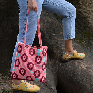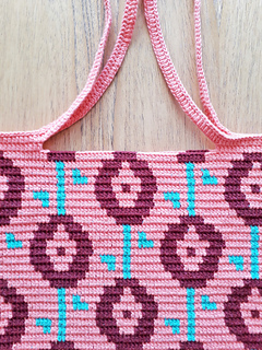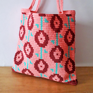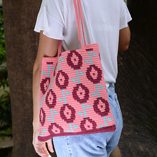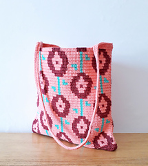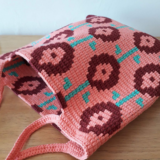 Work the Rosette bag with the tapestry crochet technique in double crochet.