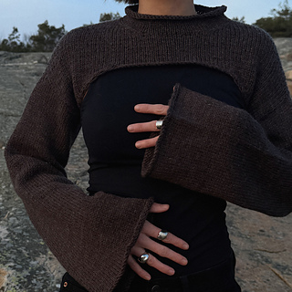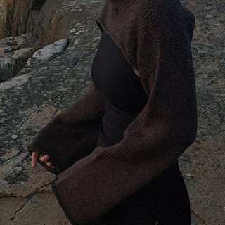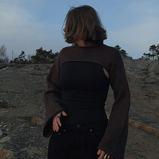 Rost is a relaxed fit, long-sleeved bolero that can be worn over a long- or short-sleeved top, as a light outer layer, or directly against the skin. It is a versatile garment that works equally well in both everyday and more dressed-up settings. The bolero is worked in separate pieces: the back, shoulders and front are worked first, after which stitches are picked up for the sleeves and collar.