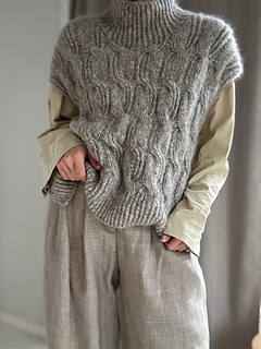 Vesten strikkes oppefra og ned. Først strikkes der frem og tilbage over bag- og forstykket, hvorefter de to dele samles, og kroppen strikkes rundt. For at sikre en velsiddende pasform strikkes der vendepinde øverst på bagstykket samt på begge skuldre.