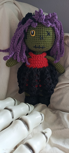 Say hello to Rottie - a sweet yet slightly spooky zombie girl who’s crawled her way out of the yarn graveyard!