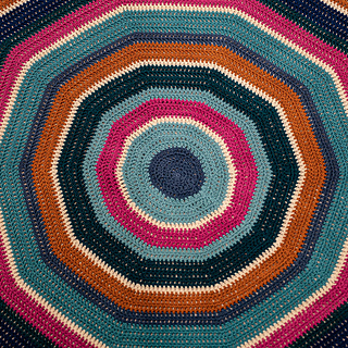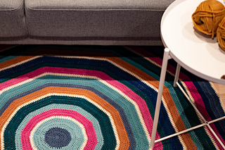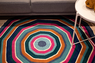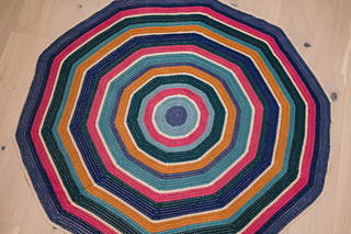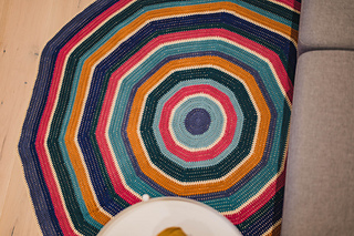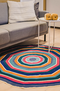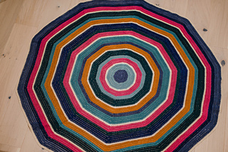 The pattern repeats easily and you can use it as a base to crochet other round rugs in other colors and yarn weights as well.