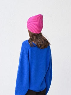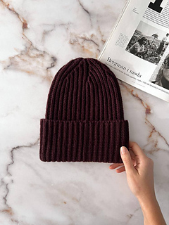 You can make this hat in two ways: in rows or in the round. In both cases you will make it from the bottom up. Once you cast on your stitches, you will start working the brioche up to the indicated height. You will then model the crown of the hat, making decreases in the indicated places. Once the hat is blocked and finished, you will fold the brim outwards.