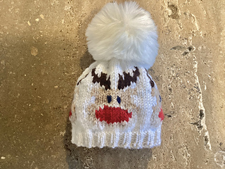 Everyone loves Rudolph this cutebobble hat pattern makes seven sizes. Made on two needles.