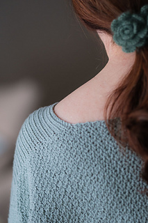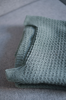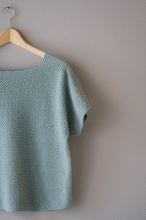 This tee is comfy and relaxed, perfect for spring or summer. The whole piece is worked from side to side as one piece starting from the sleeve. Kimono sleeves and rectangular neckline give contrast to crocheted feminine texture. Hem is also slightly curved which is quite flattering shape. Yarn is made of cotton, linen and viscose, and produced in Norway.