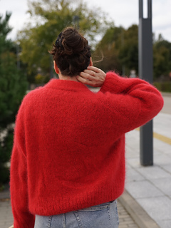 The Ruke Solid cardigan is a light mohair piece that belongs to the capsule wardrobe. Knitted from the top down, the yoke and body are worked flat, while the sleeves are knitted in the round. The front band is worked in double knit stitch, which keeps it neat even after frequent wear. With a straight body for easy length adjustment and gently tapered sleeves, this cardigan offers timeless elegance and versatility for everyday life.