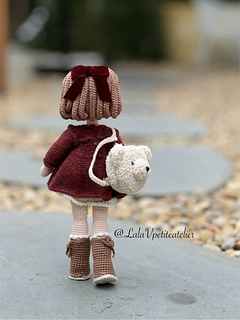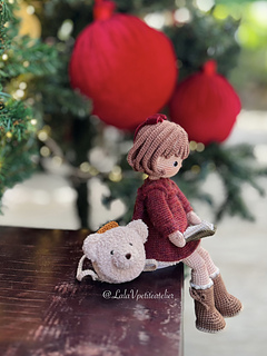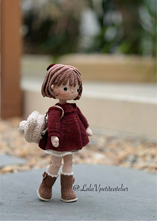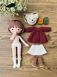 Rumi – A Gentle Daydreamer is a sweet and thoughtful crochet doll designed with soft textures and a charming autumn look. This digital pattern includes detailed instructions to make the doll and her removable accessories: a long-sleeve dress, boots, hair bow, book, and fluffy bear-shaped backpack.