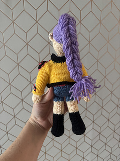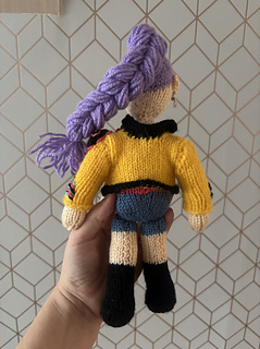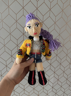 Learn to knit Rumi from K-pop Demon Hunters! Your doll will feature all of Rumi’s unique features, including her most iconic outfit with the yellow jacket. This doll is quick to make and is the perfect gift for any kpop fans. Your doll will measure around 28cm tall. This is a great pattern for intermediate level knitters, using simple stitches, easy to read instructions and a great opportunity to master your embroidery skills.