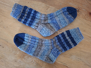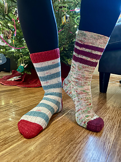 This is a top-down sock with a traditional heel flap and gusset. It is worked using magic loop; needle 1 will be the front of foot/instep/leg, and needle 2 will be the back of foot/leg and heel. Sized from child to large adult these are perfect socks for the whole family.