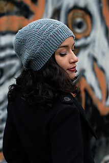 Featuring cushy garter stitch and a simple and effective slipped stitch pattern, Ruschia is all you want in a comfort slouch. Worked sideways the pattern is easily adjusted for different sizes and/or yarn gauges.