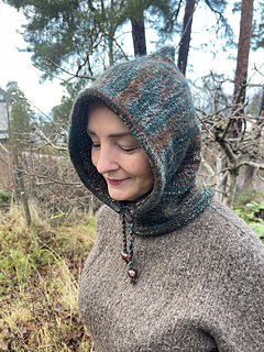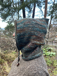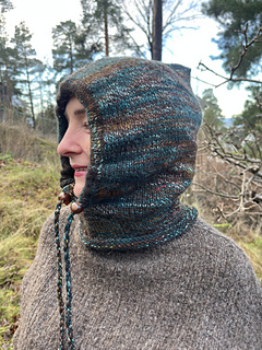 Hetten er vid og dyp. Den kan snøres godt sammen rundt ansiktet med tråd i løpegangen.