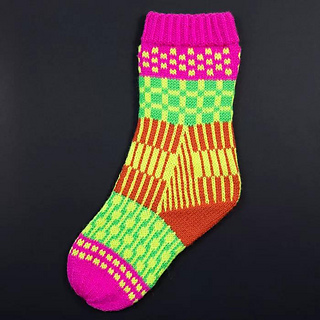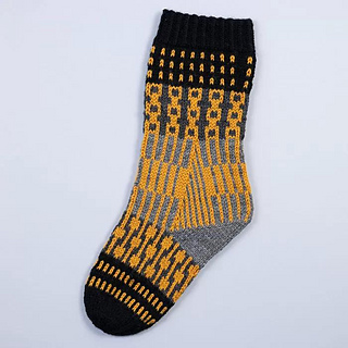 Ruutu ja rytmi -sukkien simppelit graafiset kirjoneulekuviot ovat mukavia neuloa, sillä käytössä on vain kaksi väriä kerrallaan ja lankajuoksut ovat pääsääntöisesti lyhyitä. Useimmissa osioissa on kaksi kuviovaihtoehtoa, ja sattumalla on osansa siinä, millaiset sukistasi lopulta tulee.