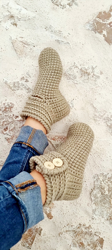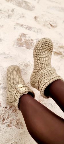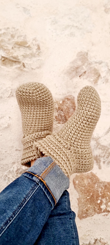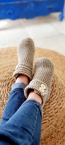 Crochet your own cozy, warm slipper socks with this easy-to-follow pattern. Designed for a foot length of 22–23 cm, the pattern also includes clear instructions so you can easily adjust the size to make slippers that fit perfectly.
