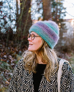 Cozy and full of color, the Saara Beanie is a gorgeous winter accessory worked with multiple strands of silk mohair. Knit from the bottom up: start with a neat ribbed brim using 5 strands of yarn, and later add an extra strand for a soft, fluffy crown ✨