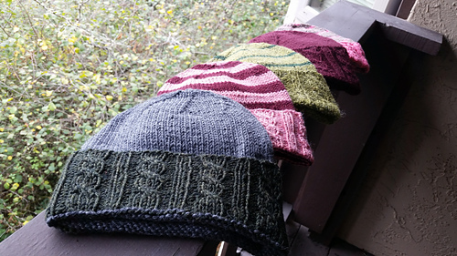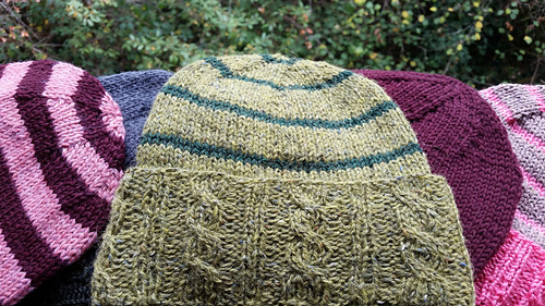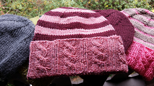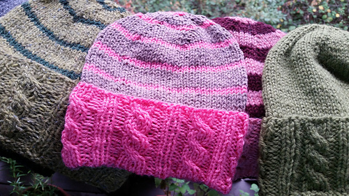 This pattern calls for worsted weight yarn but aran or DK could easily be substituted for a thicker or thinner hat.