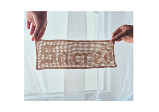 This is a filet crochet chart with written instructions on how to crochet the “Sacred” Doily.