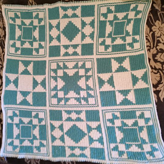 This throw size blanket features traditional star squares that you’d find on an Amish quilt.