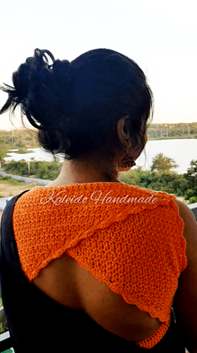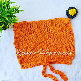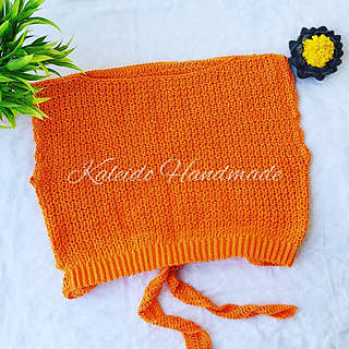 Construction: The Top is worked flat back and forth with simple double crochet stitches as 3 different panels (Front, Back x 2 and Ties x 2).