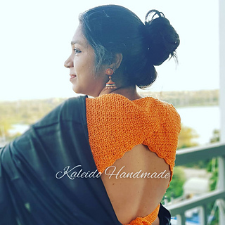 The Sahana Crop Top is a very simple yet elegant looking textured blouse which can be paired with pretty much any kind of clothing. It has been primarily designed to be worn as a blouse with a saree but can also be mixed and matched with a maxi/midi skirt, jeans, shorts and even paired with trousers and blazers/jackets. The fabric is crocheted in simple Double crochet stitches making it a super easy project for beginners.