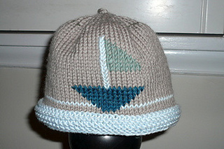 This hat was designed for a summer in Nantucket and worked out great for boat rides and evenings by the ocean. The sailboat was added in after the hat was knit, which worked out nicely without adding bulk.