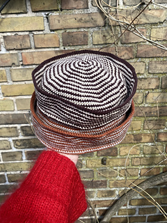 Hatten hækles rundt i spiral og startes fra toppen af hovedet i ét stykke uden behov for syninger.